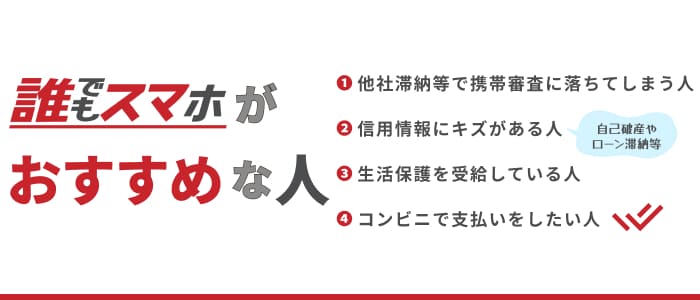 ①誰でもスマホはブラックOK!コンビニ支払いに対応