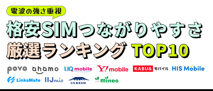 - 6 【電波の強さ重視】格安SIMつながりやすさ厳選ランキング TOP10