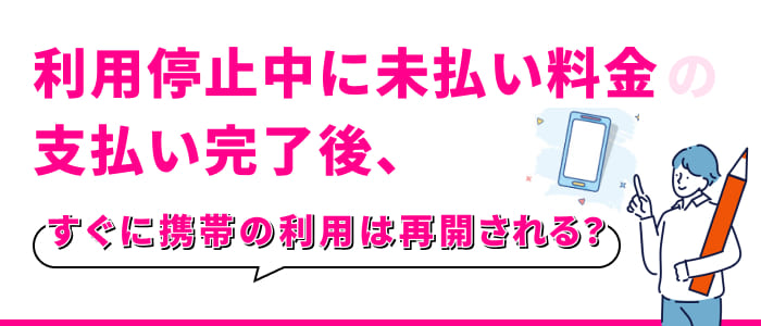 利用停止中に未払い料金の支払い完了後、すぐに携帯の利用は再開される?